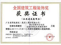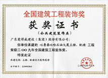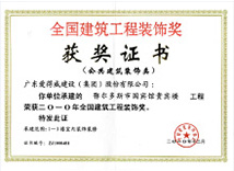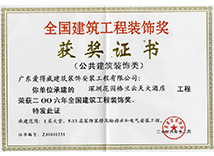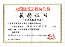| 广东省优秀建筑装修工程奖 | 广东省建筑装饰行业科技示范工程奖 | 深圳市装饰金鹏奖 |